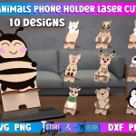 3d animals phone holder lasercut bundle, phone stand laser cut svg, cell phone stand bundle, animals laser cut, 3d laser cut, home decor svg |