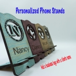 Personalized monogram wood cell phone stand- Custom with name and company logo |